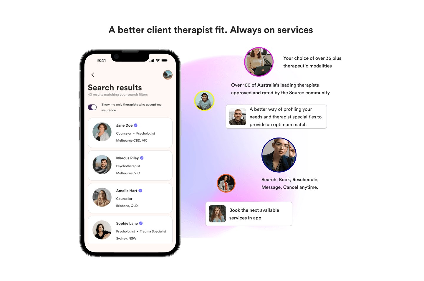 Yes. Many therapists on Source offer secure telehealth sessions, so you can access care from the comfort of your home or wherever you are in Australia.